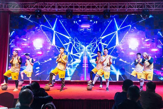 本次年會由公司內(nèi)部三個部門聯(lián)合承辦,所有節(jié)目均由承辦部門自編、自導、自演,充分展現(xiàn)了三圣人多才多藝的綜合素質(zhì)和自信向上的精神面貌。帥氣十足的佳佳和優(yōu)雅靚麗的雙雙,這一對主持搭檔帶給大家耳目一新的開場。隨后上演的一段兵乓球熒光舞,科技感十足的服裝、絢麗的七彩光,配上搞笑夸張的肢體動作,子公司艾伯納三圣的節(jié)目征服了在場觀眾。接下來的“灌籃高手”全明星秀,三圣籃球社團的部分成員們,在葛教練的指揮下,展現(xiàn)了酷炫嫻熟的運球技藝和團結默契的球隊配合。