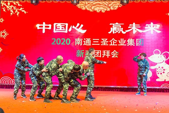 為了弘揚體育健身精神,本次年會上凸顯對“體育強則中國強”的高度關注:曾參加今年“南通國際馬拉松”賽事的三圣健將們,高舉國旗、彩球,插上雙翼、身披戰(zhàn)袍,用自己的特殊方式,威風凜凜地依次入場;彩虹跑小組成員也自信亮相,搞怪機靈的鼠大哥帶著鼠弟鼠妹接過豬師兄的接力棒開啟了2020新大門,合唱合舞燃爆現(xiàn)場。