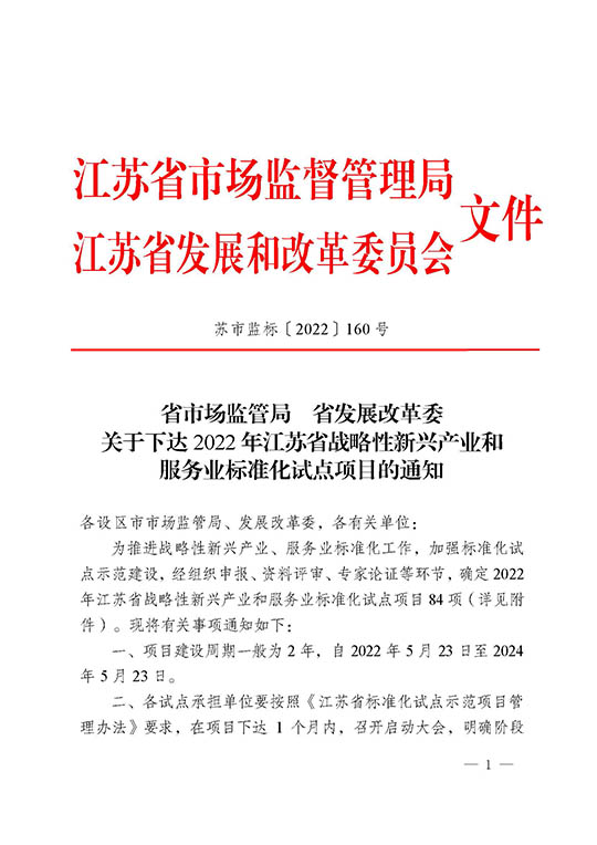 江蘇省戰(zhàn)略性新興產(chǎn)業(yè)標(biāo)準(zhǔn)化試點(diǎn)項(xiàng)目由省市場監(jiān)督管理局和省發(fā)展和改革委員會共同組織。項(xiàng)目對申報(bào)單位有著明確的要求:市場占有率和經(jīng)濟(jì)效益排名位于本地區(qū)同行業(yè)前列,具有良好的發(fā)展?jié)摿?,具備統(tǒng)籌技術(shù)創(chuàng)新、標(biāo)準(zhǔn)研制和產(chǎn)業(yè)化的能力等等。